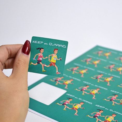 Sticker adhesivo 4/0, medida 3 x 3 cm.