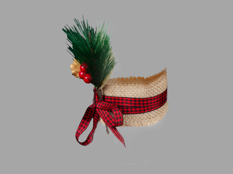 Adorno decorativo de yute, cinta y pino, para vela B52.