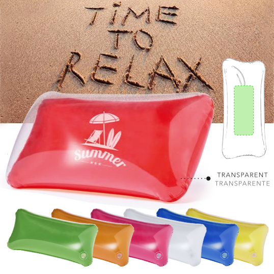 Original almohadilla inflable de resistente PVC en combinación de acabados transparente/sólido y en variada gama de vivos colores