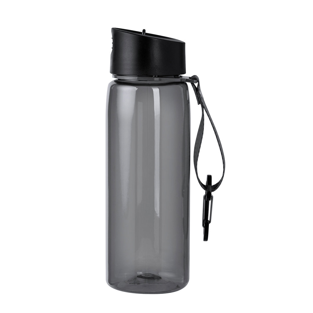 Bidón de 800 ml fabricado en resistente RPET y cuerpo de acabado transparente en variada gama de colores. Tapón negro de rosca, con dosificador y dosificador plegable. Con cinta de transporte a juego y mosquetón metálico para un cómodo transporte. Disponible en variada gama de colores. El material RPET se elabora a partir de plástico reciclado, para así fomentar la reutilización de residuos plásticos y ayudar a la sostenibilidad del planeta. 800 ml