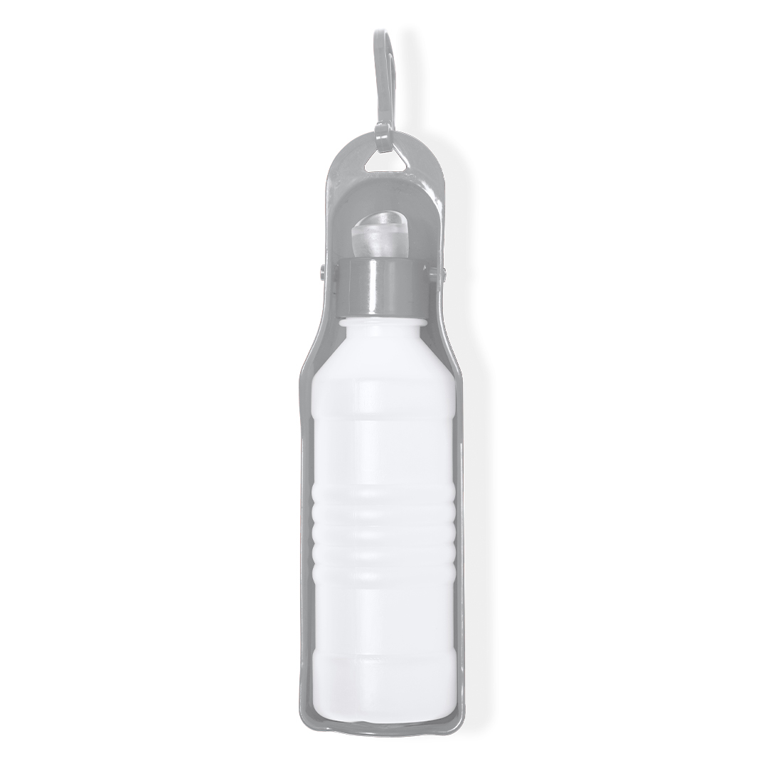 Práctico bidón y bebedero para mascotas de 250 ml de capacidad, fabricado en resistente PP. Fácil de usar, solamente hay que poner el bidón en posición vertical y presionarlo hasta que el bebedero se llene con la cantidad de líquido deseada. Con gancho de ajuste y presentado individualmente en caja de diseño kraft. 250 ml