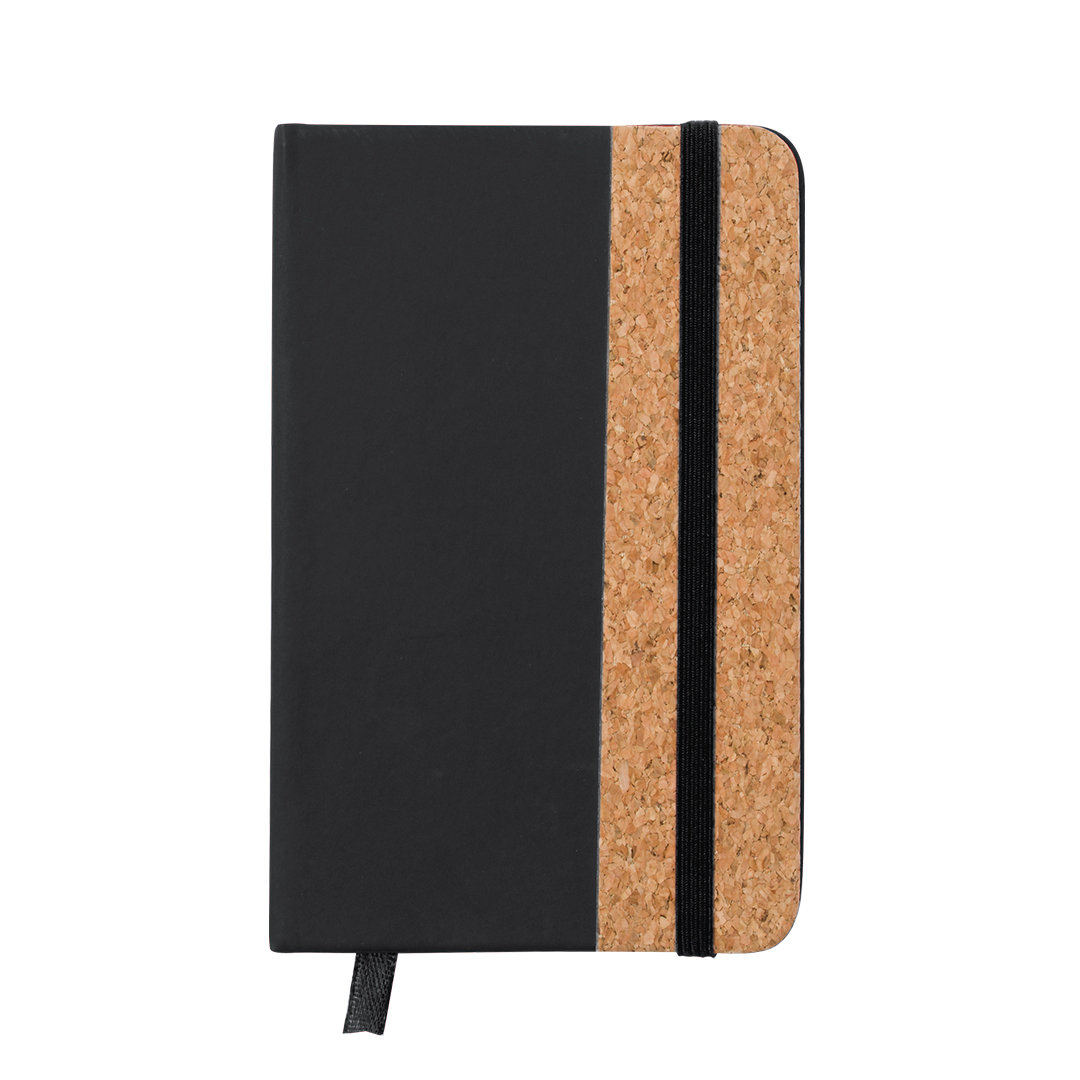 Bloc de notas con tapas rígidas elaboradas con suave corcho. Incluye 80 hojas lisas con elástico de sujeción y marcapáginas de tela a juego. Disponible en amplia gama de colores, con tacto exterior en combinación de corcho natural y polipiel. Presentado en bolsa individual. Elaborado con elementos vegetales para así fomentar la utilización de materias primas naturales y reducir las emisiones contaminantes. Portada Rígida. 80 Hojas