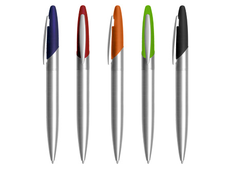Bolígrafo Metálico modelo "Twister", con superficie superior engomada color. Escritura negra.