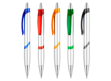 Bolígrafo plástico plateado "Júpiter". Escritura Azul.