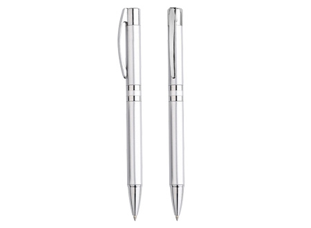 Bolígrafo plástico plateado "Lord of Rings". Escritura Azul.