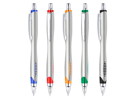 Bolígrafo plástico plateado "Motion". Escritura Azul.