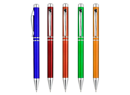 Bolígrafo plástico "Prime" con cuerpo de color metalizado. Escritura azul.