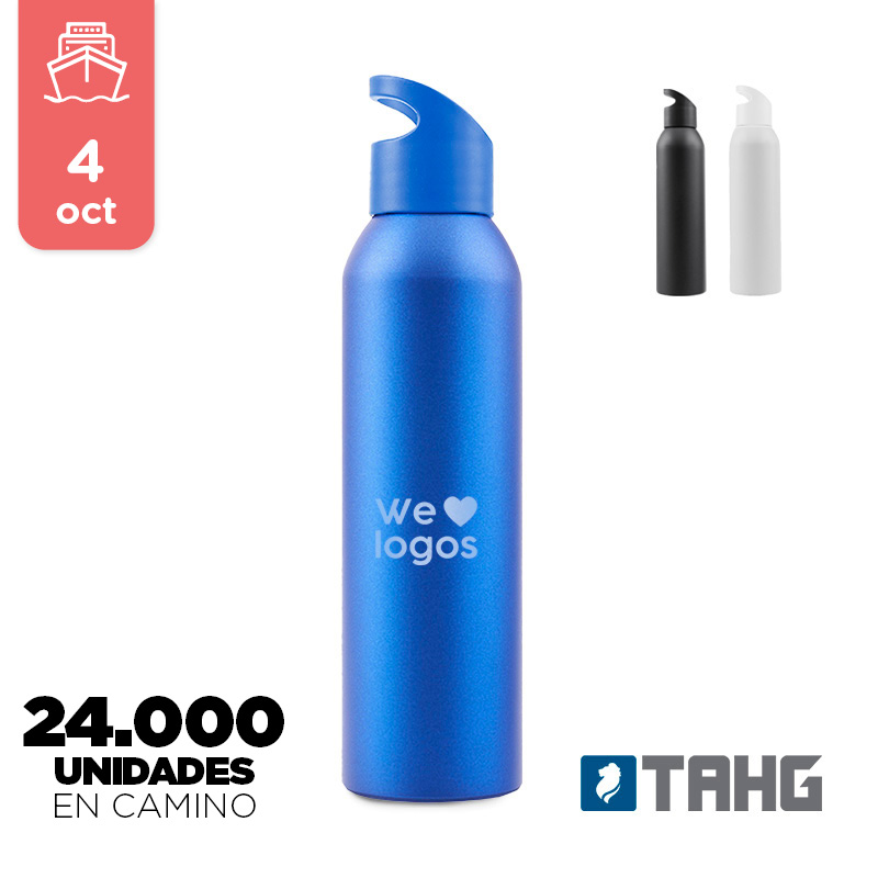Las fechas, precios en portada y entregas son estimativas y están sujetas a cambios. Sport Bottle reutilizable de aluminio con tapa rosca de PP y silicona. Cuenta con una tapa con agarre para facilitar su transporte. Producto libre de BPA. Medidas: 24 cm x Diámetro 6,6 cm. Capacidad: 650 ml. Tahg.