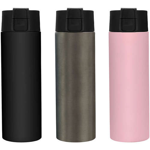 Ø 7 cm x 23 cm. Acero inoxidable. Capacidad 450 ml. Botella doble pared, sellada al vacío. Interior de acero 304 y exterior de acero 201. Pintura acabado mate. Tapa en PP con traba de seguridad y botón pulsador de apertura. Mantiene por más de 12 hs la temperatura de las bebidas calientes y 24 hs de las bebidas frías. Presentación en caja de regalo kraft.