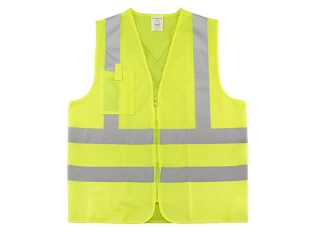 Chaleco Reflectante de Seguridad modelo "Traffic", 100% tela poliéster fluorescente con bandas reflectantes color plateado de 5 cm. de ancho. Incluye cierre eclair y bolsillo delantero superior derecho. Certificación ISO 20471:2013+A1:2016.