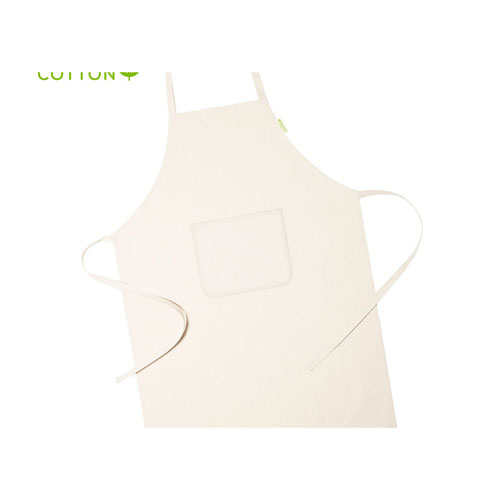 Delantal de línea nature, elaborado en material 100% algodón orgánico. Con bolsillo frontal y cintas de ajuste, de corte por debajo de la rodilla. Distintivo algodón orgánico en etiqueta.