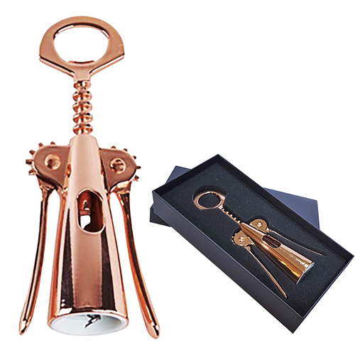 Descorchador de vinos electro plateado en color cobre.