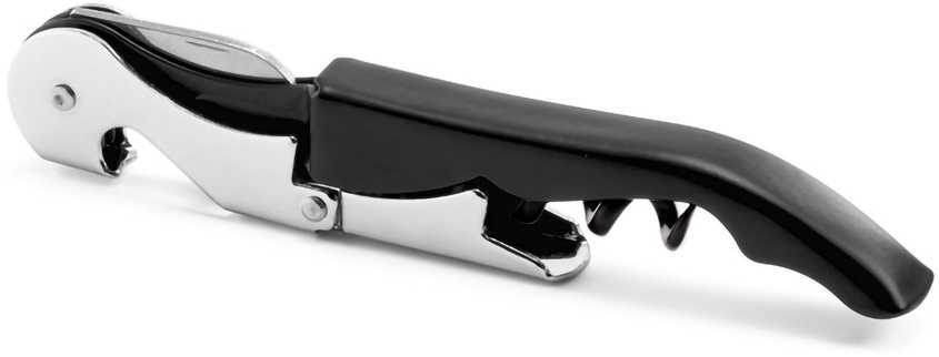 12,1 x 2 x 1 cm. Acero inoxidable 420. Peso: 52g. Destapador sacacorchos dos tiempos de vinos color negro, pintura mate y detalles en color plata. Sierra afilada para sacar la cubierta o capsula de la botella. Presentación en caja de regalo.