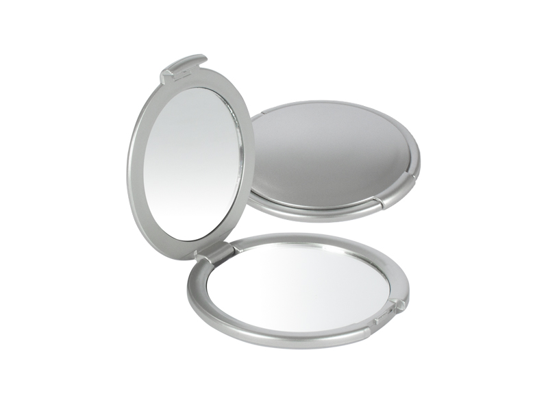 Espejo plástico plateado redondo doble, contiene 1 espejo normal + 1 espejo con aumento.