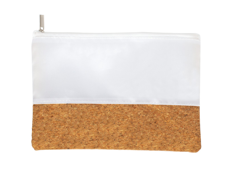 Estuche Cosmetiquero de corcho y poliéster satinado blanco, con cremallera.