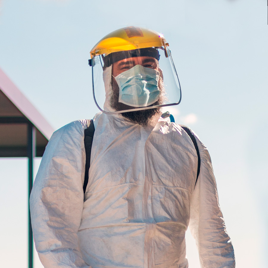 Face Shield - Escudo Protector Facial Profesional, con amplio frente de policarbonato (PC) translúcido abatible, y estructura plástica ABS interior ajustable para cabeza, para una completa protección de transmisión de partículas por vía aérea. Incluye protección de esponja para la frente. Se recomienda especialmente para uso en labores de interacción personal que requieren una alta protección y aislamiento, como servicios de atención a clientes o público en general.