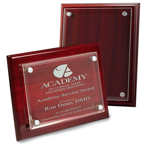 Galvano madera color Caoba y frontis de acrílico. Con orificios para colgar de manera vertical o horizontal en muro.