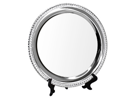Galvano Plato de Acero inoxidable cromado tamaño grande, con circunferencia metálica para Sublimación. Presentación en bolsa plástica.