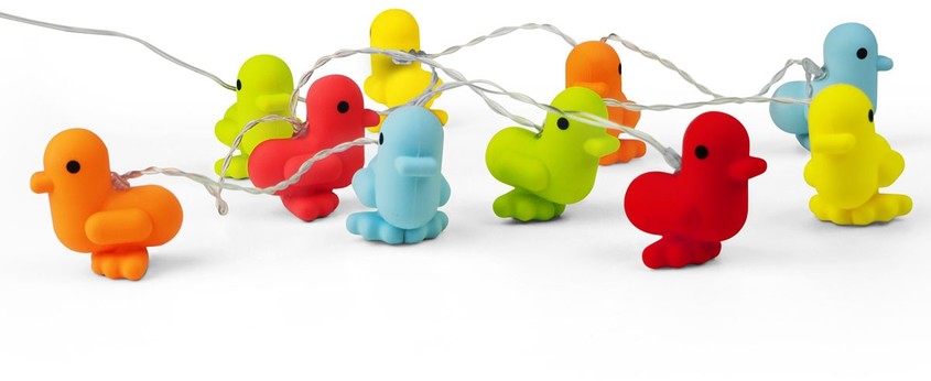 150 cm de largo. Silicona. Guirnalda luminosa. Luz LED. Funciona con 3 pilas AAA de 1.5V (no incluidas). Estos adorables y coloridos patitos iluminan de noche y alegran de día. Son simpáticos, tiernos y súper suaves. Ideales para decorar tus espacios. GATO es distribuidor exclusivo de este producto CANAR en Argentina. Presentación en caja de regalo.