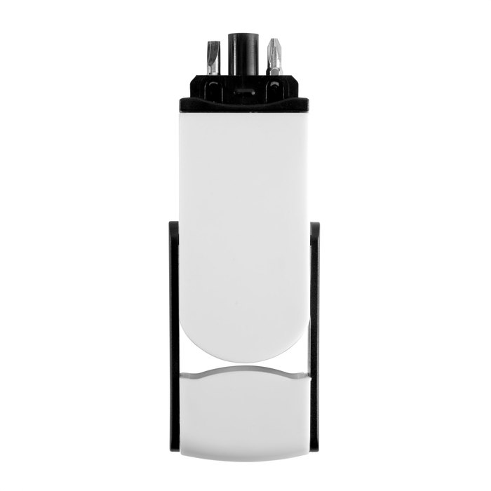 Set de destornillador con 2 puntas intercambiables ocultas (plana de 3,5 mm y cruz de 2mm.) Ambas en CR-V que las hace más durables y resistentes a la corrosión. Incluye cinta métrica de 1 m. con escalas en centímetros, pulgadas y pies. Cuerpo imantado para poder fijar las puntas. Apertura por deslizamiento.