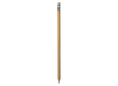 Lápiz grafito largo de madera barnizada. Cuerpo 100% cilíndrico, ideal para imprimir logos sin problemas. Incluye goma de borrar y viene con punta lista.