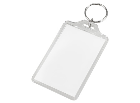 Llavero grande porta-foto de Acrílico transparente. Para insertar papel impreso en compartimento interior.