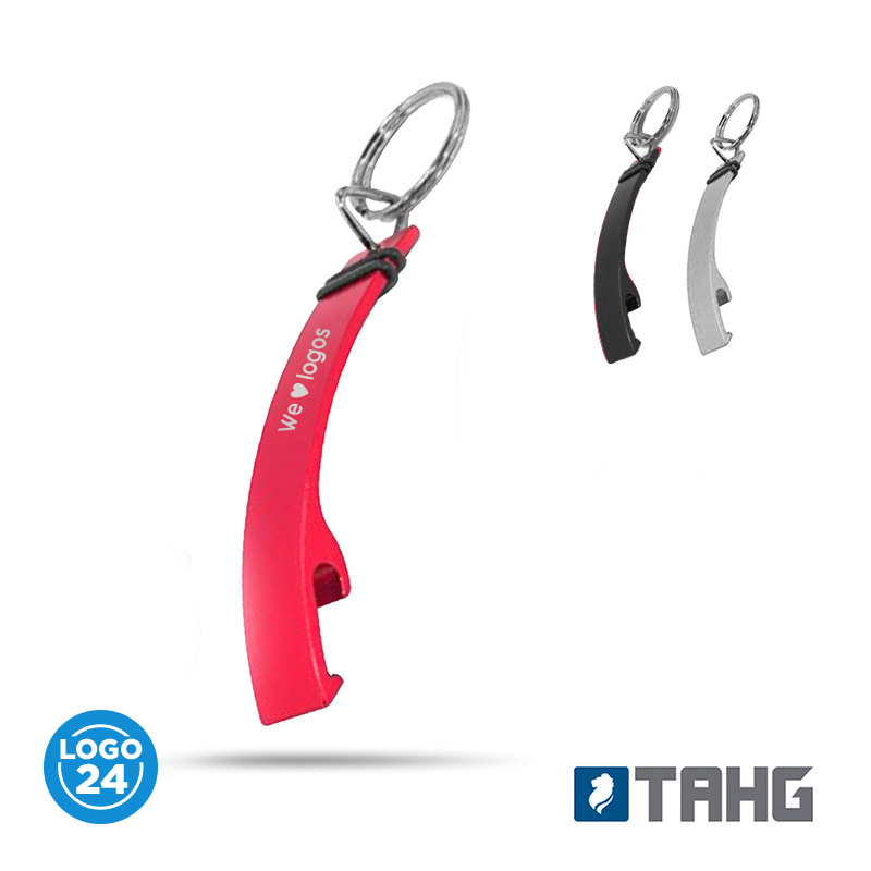 Llavero abrebotellas de metal con grip de goma antideslizante. Medidas: 1,5 x 7,9 x 1,2 cm. (anillo de 24 mm de diámetro). Tahg. LOGO24: Producto disponible para el servicio de logueo en 24 horas respetando unidades mínimas de logueo y 1000 unidades máximas. Consultar términos y condiciones del servicio