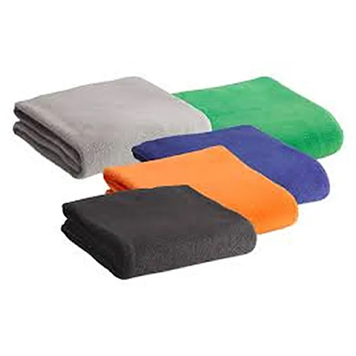 Frazada polar terminación orillada overlock, presentación con cinta. Colores varios disponibles.