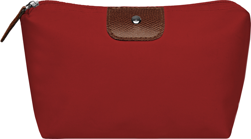 22 x 13 x 5,5 cm. Polyester. Necessaire con detalles en símil cuero y un botón metálico en el frente. Interior con forro. Tiradores de cierre de símil cuero.