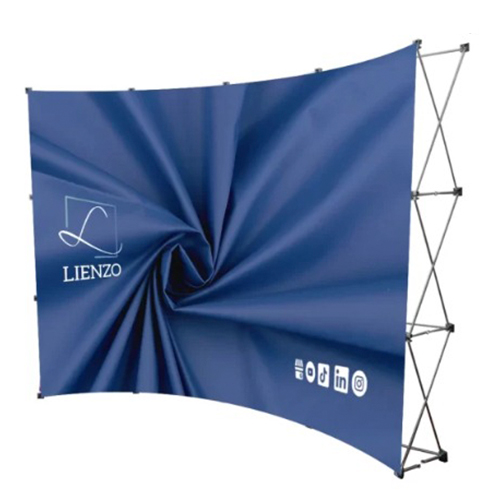 Estructura plegable de fácil armado y con uniones de seguridad. Impresión de gráfica en tela Display de alta calidad de 250 gramos, en sublimación con tintas eco solvente en alta definición (Hasta 1.440p). Velcro adherido con costura a la tela para unir la gráfica a la estructura. Bolso de transporte.