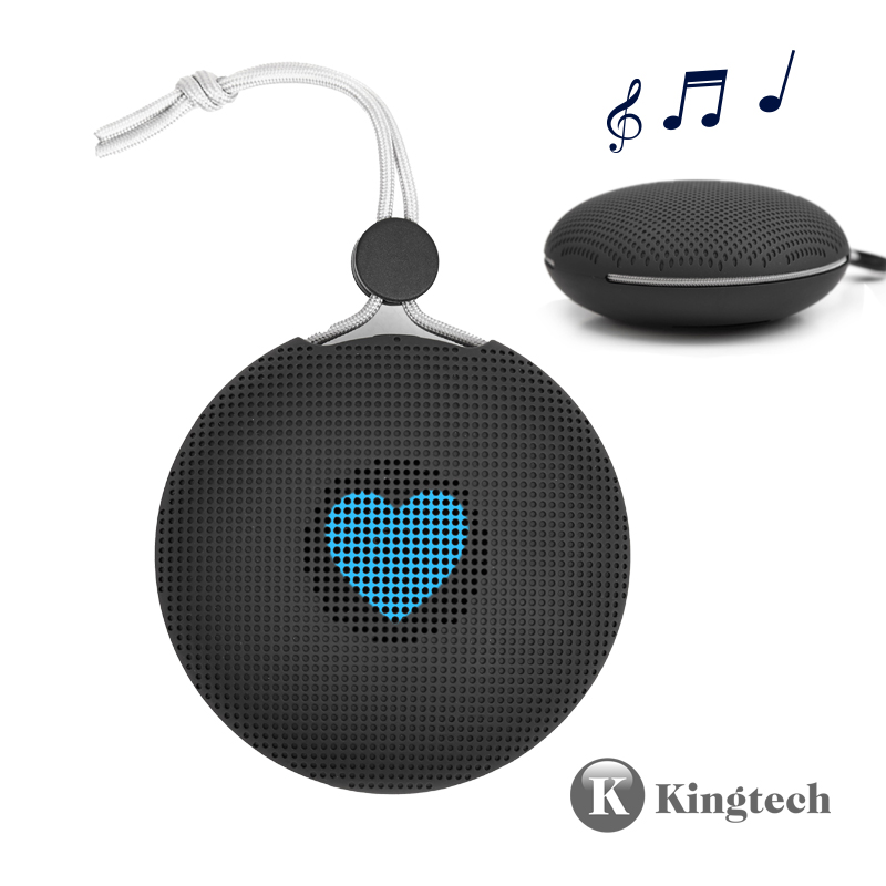 Parlante circular portátil con tecnología bluetooth y micrófono manos libres. Realizado en ABS, con correa para colgarlo y facilitar su transporte. | Batería de 400mAh | Potencia del parlante: 3W | Frecuencia: 60Hz-16KHz | Conexión5v/300mA | Peso: 159g | Medidas Diámetro 98* altura45mm | Kingtech. LOGO24: Producto disponible para el servicio de logueo en 24 horas respetando unidades mínimas de logueo y 100 unidades máximas. Consultar términos y condiciones del servicio