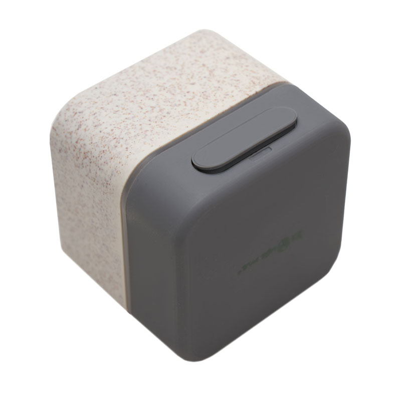 Parlante portátil con tecnología Bluetooth 5.0. Realizado en combinación de PP con Silicona y pasta de paja de trigo, un material sustentable que reduce el consumo de plásticos vírgenes.. Su peso es de 116gr, y entre sus características técnicas encontramos: Bateria de 300mAh; Poder del parlante?3W * 1; Frecuencia: 200Hz-20KHz