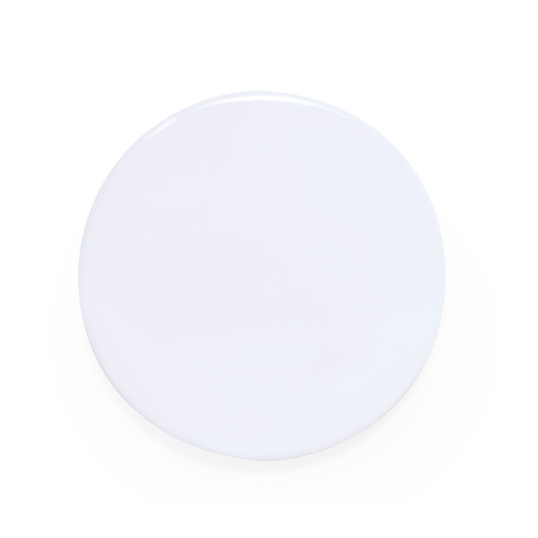 Excelente pin de color blanco de gran tamaño. Accesorio versátil para la estampación de multitud de diseños gracias a su base blanca, adaptable a cualquier tejido gracias a su imperdible situado en la parte posterior.