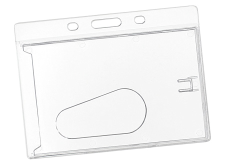 Porta-Credencial de Acrílico transparente, para Credenciales tamaño Tarjeta de Crédito. Presentación horizontal.