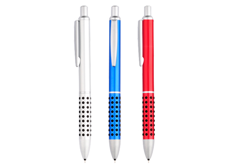 Portaminas metálico satinado modelo "Caterpillar", con lunares de goma negra que brindan una suave sensación de masaje dactilar al escribir.