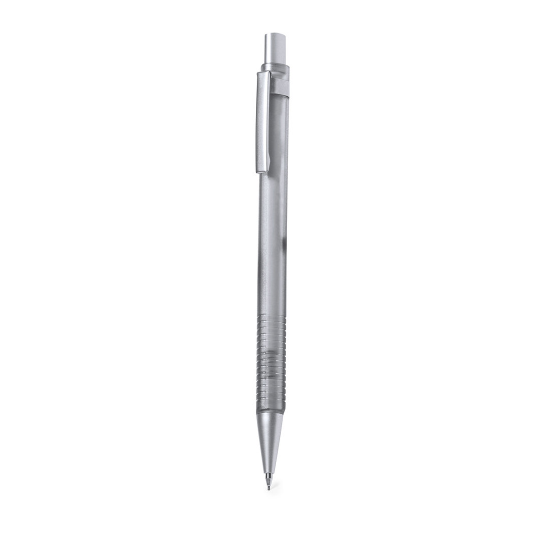 Elegante portaminas hecho en resistente ABS. Cuerpo en color gris translúcido y empuñadura a juego de tacto rugoso para un mejor agarre, con elementos cromados como botón, clip y punta. Con goma y minas incluidas de 0,7 mm. Minas 0,7 mm Incluidas