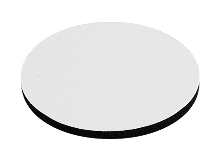 Posavaso redondo de 5mm de espesor y 9cm. de diámetro, con base de silicona negra y cubierta de tela blanca para Sublimación.