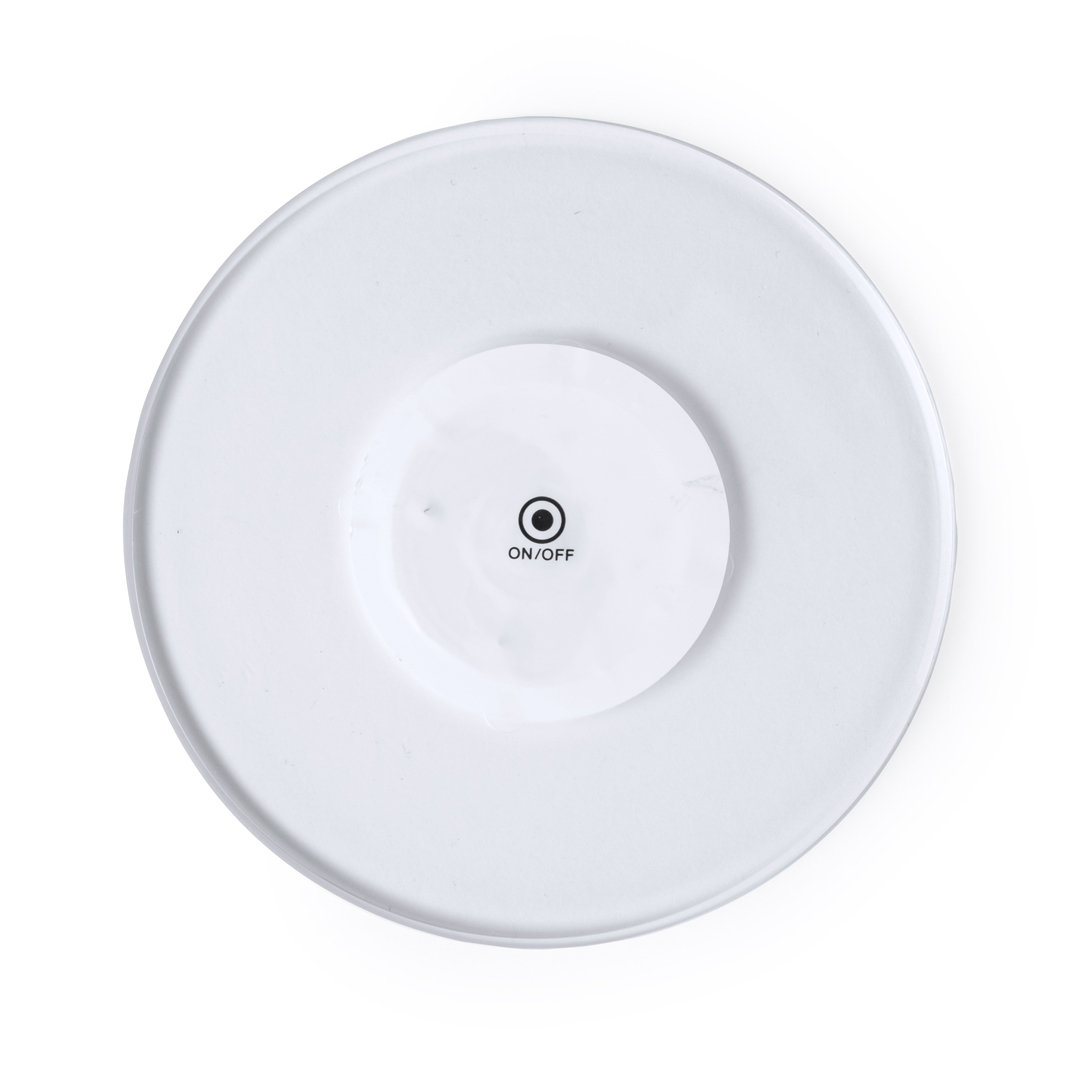 Original posavasos con 6 LEDs para iluminar las bebidas. Con botón en la base y 3 posiciones de iluminación (luz fija y luz intermitente rápida o lenta) . Se fija a la base de cualquier bebida con cinta autoadhesiva y está alimentado por dos pilas de botón (incluidas). Luces Led Multicolor. 3 Posiciones de Luz, Fija e Intermitente. Pilas Botón Incluidas