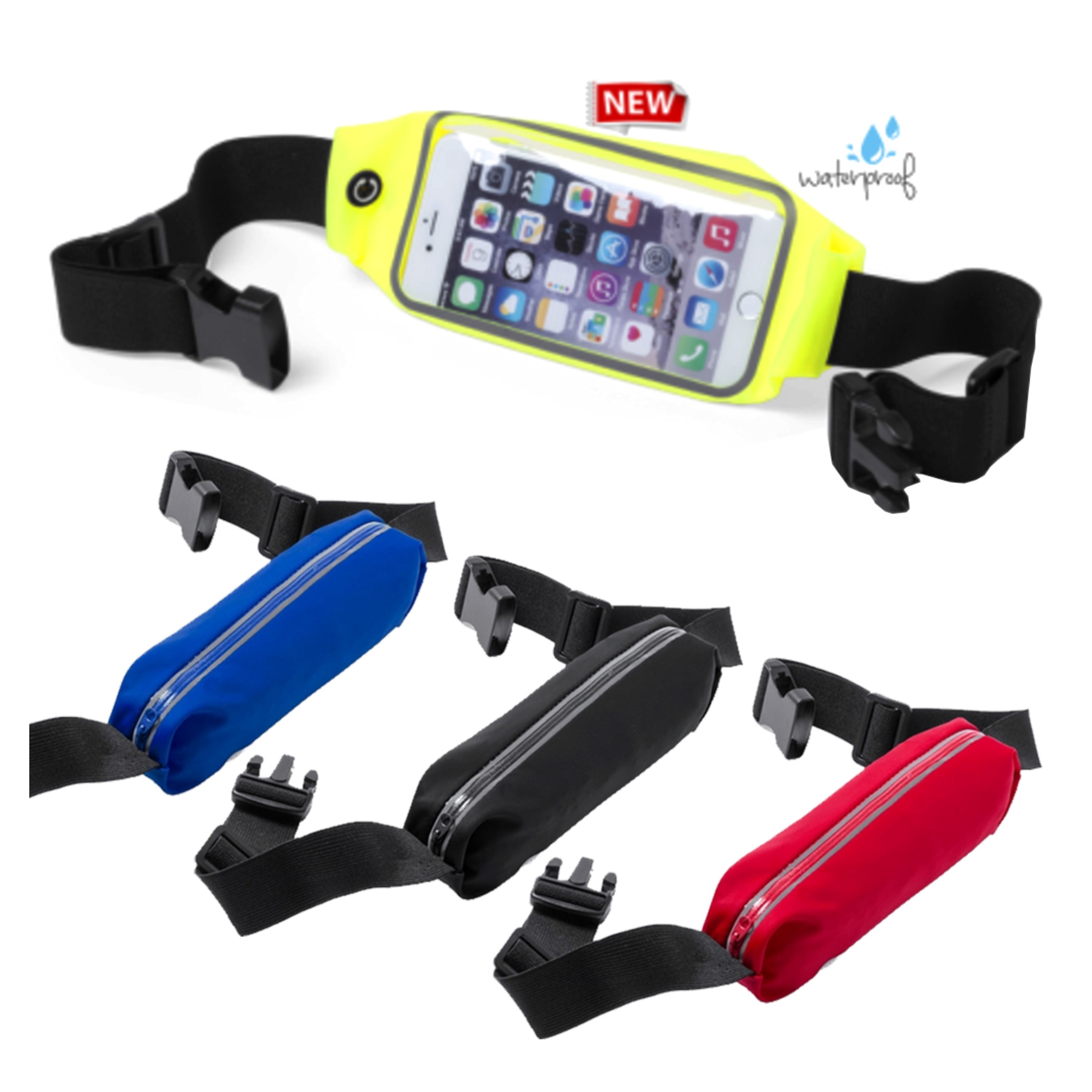 Riñonera de alta calidad y resistente a las salpicaduras de agua en lycra de variados colores. Bolsillo principal en resistente PVC con función táctil. Diseñada para actividades deportivas y de ocio. Con bolsillo de cierre de cremallera a juego, salida para auriculares y cintura elástica con cierre de clic ajustable. Pantalla Táctil. Reflectante