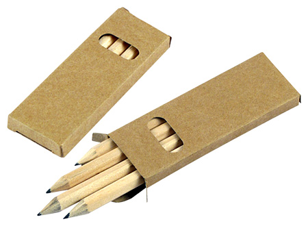 Set de 4 Lápices Grafito Negro hexagonales, en Estuche rectangular de Cartón reciclado con ventana.