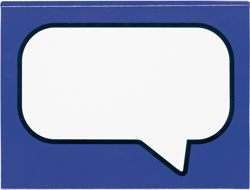 10,5 x 11 x 1,6 cm (cerrado) 17,3 x 11 cm (abierto). Cartón. Set de post-it en forma de globo de texto, rectangular y señaladores de diferentes colores.