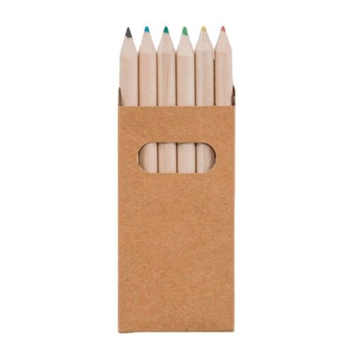 Set de 6 lápices en caja de cartón natural con ventana.Lápices de madera de acabado natural y minas en variada gama de colores.Incluye 6 Piezas.