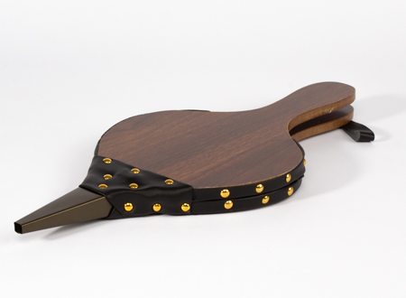Soplador grande de aire tipo Acordeón, para chimemeas y parrillas. Superficie MDF, reforzado con cuero y tachas. Toma de aire posterior. Amplia superficie para logo.