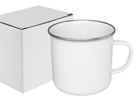 Tazón grande de acero enlozado "Enamel" de 650cc. con cobertura para Sublimación. Único con borde de Acero Inoxidable, que entrega higiene y protección al contacto con tu boca.