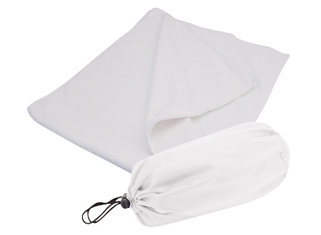 Toalla deportiva en tela Microfibra. Presentación dentro de bolsito de nylon 190D/PU.