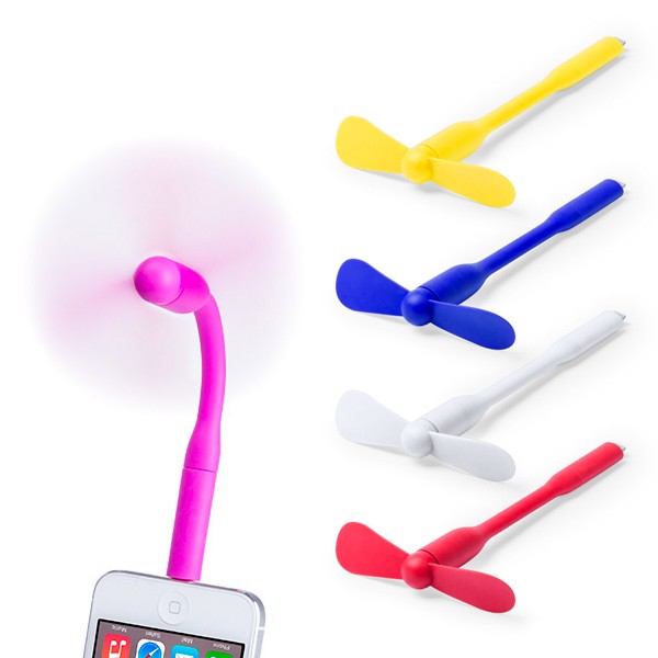 Original ventilador de cuerpo flexible en suave acabado y divertidos colores. Compatible con dispositivos Android mediante conector de carga micro USB y con dispositivos iOS mediante adaptador de carga micro USB a Lightning. Presentado en atractiva bolsa zip de diseño